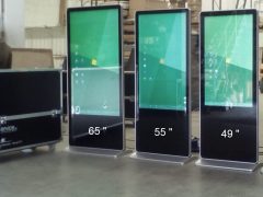 Los diversos dispositivos táctiles se conforman por pantallas táctiles 4k, con tecnología capacitiva multituch, 10 puntos táctiles simultáneos, Wi-Fi y ordenador 10 Pro. Todos cuentan con cristal único. En el caso de las pantallas táctiles pueden ser instaladas en paredes, encastadas o en soporte con ruedas. Siendo muy versátiles per su colocación en stands.