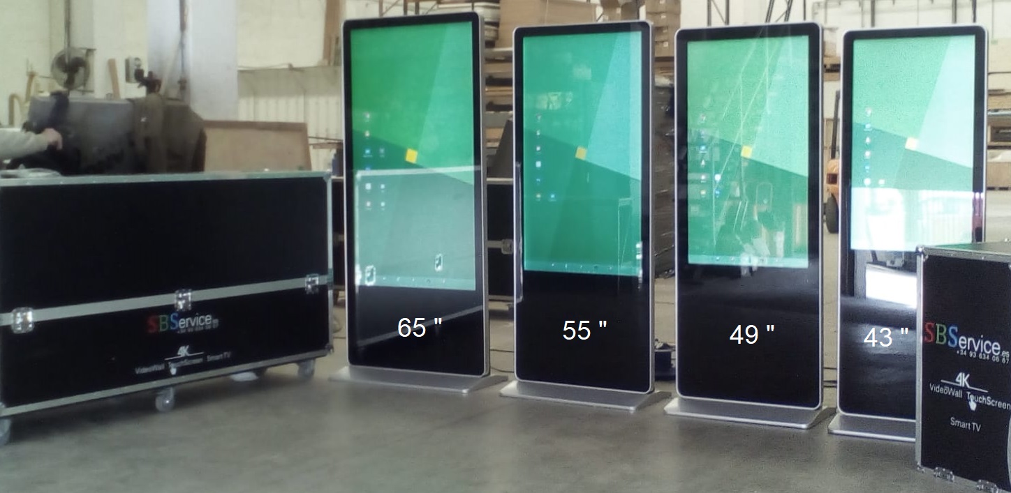SB Service como especialistas en el sector del alquiler de interactivos táctiles y audiovisuales para ferias, congresos, marketing… Esperamos el reinicio del sector con esperanza para la continuidad de nuestra actividad económica. SB Service ofrecemos un amplio catálogo de pantallas táctiles 4k en alquiler para Fitur 2021. Contamos con pantallas táctiles en diversas formas. Como tótem táctil horizontal giratorio, tótem de exterior táctil, tótem de interior, forma de smartphone giratorio, kioscos, mesas y pantallas.